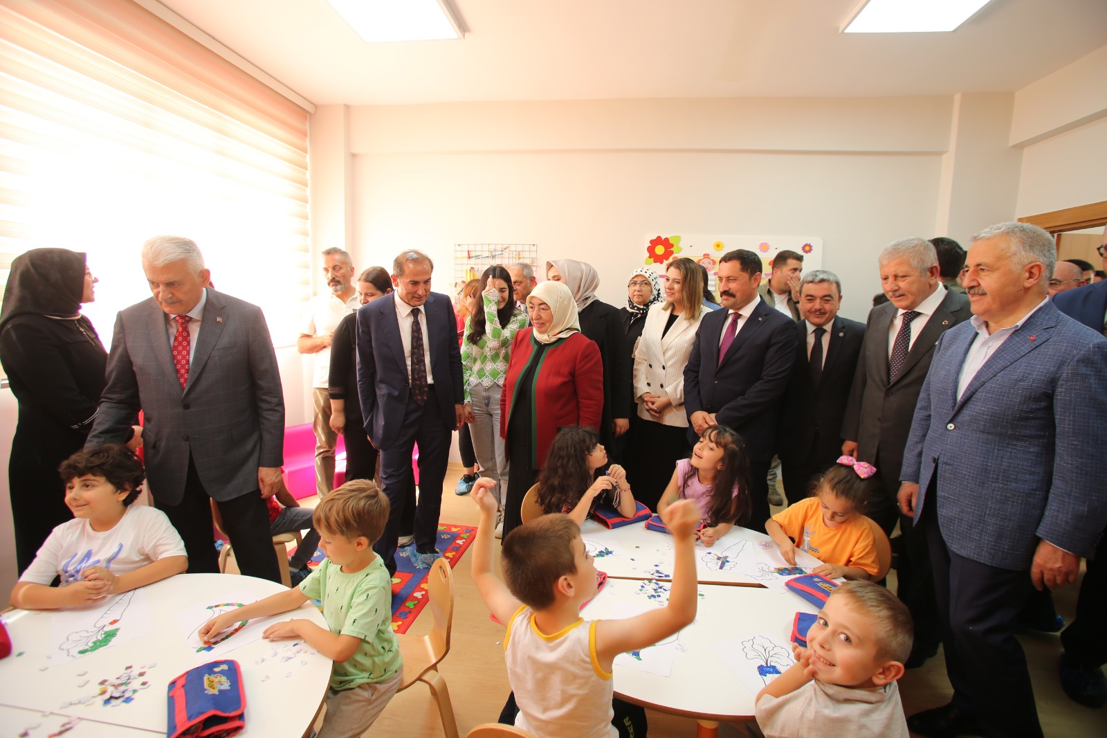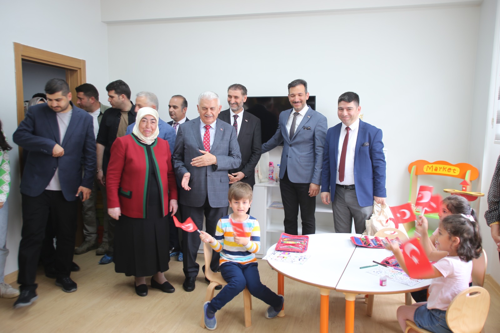 Konuşmaların ardından anaokulu binası Sayın Binali Yıldırım ile Semiha Yıldırım Hanımefendi, Valimiz Mustafa Masatlı ve Esra Masatlı Hanımefendi ile protokol üyelerimiz tarafından kurdele kesilerek hizmete açıldı. Açılışın ardından Sayın Binali Yıldırım ve eşi Sayın Semiha Yıldırım Hanımefendi, sınıfları gezerek, minik öğrencilerimizle yakından ilgilenerek, hediyeler verdiler.